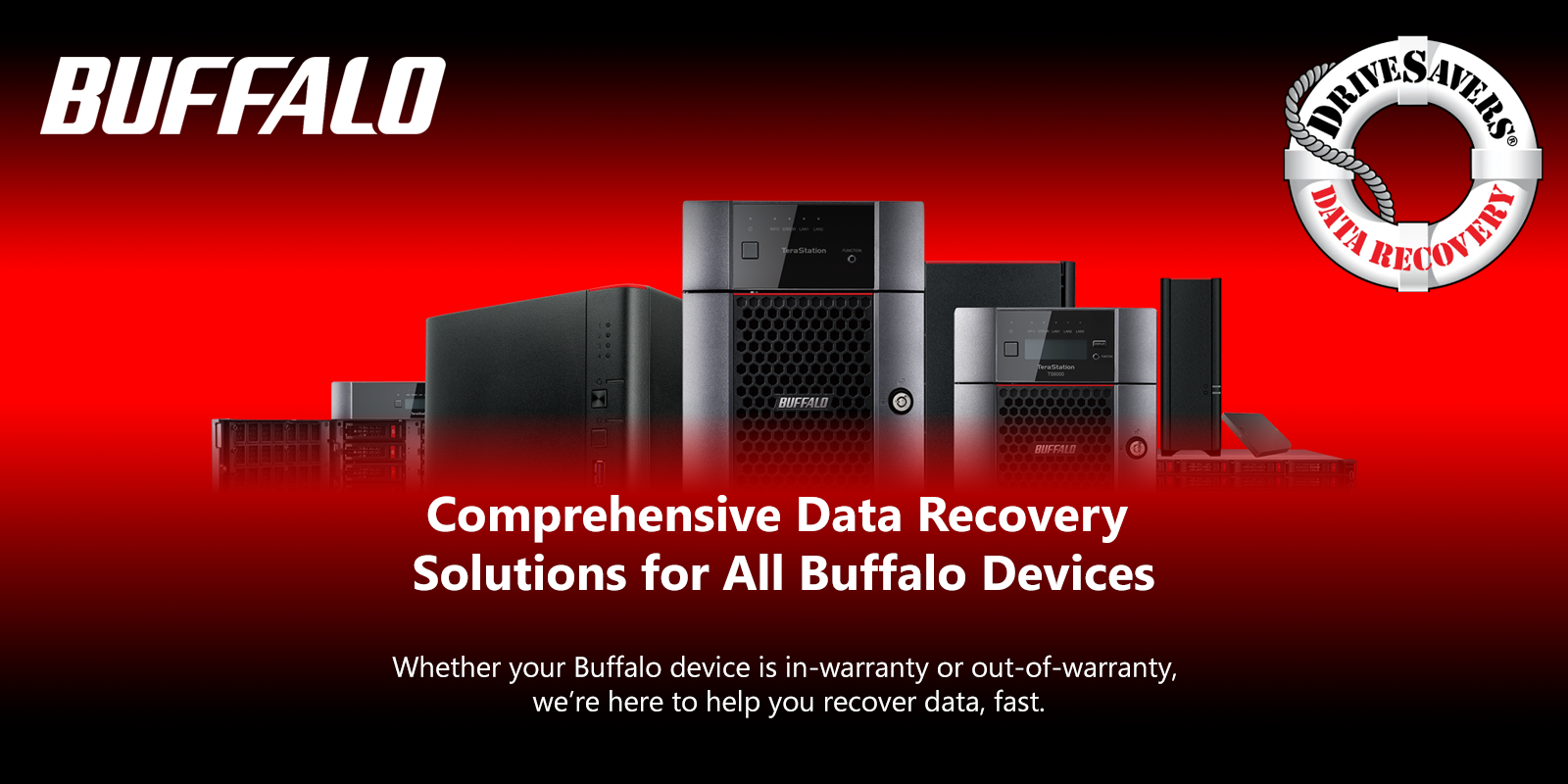 For data recovery services, first determine if your device is in-warranty. Then simply contact Buffalo for simple logical recovery, or DriveSavers for all other issues. Buffalo offers free data recovery for qualifying TeraStations experiencing simple logical issues.