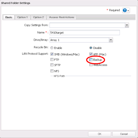 The first step in setting up TeraStation to TeraStation is to set up a folder on the target TeraStation.