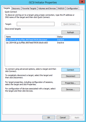 Setup iSCSI Multipath connection (Make sure step.6 and a system reboot has been completed) 8. Use the iSCSI Initiator to connect to TeraStation iSCSI volume.