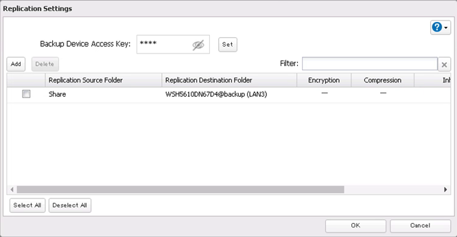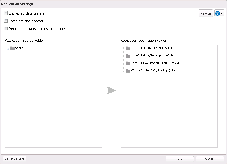 NOTE: If the replication target has multiple folders designated as backup targets, be certain to select the correct folder. Targets are listed in the format “devicename@foldername”. Only one source can replicate to a single target folder. Multiple source devices replicating to the same target folder will overwrite data.