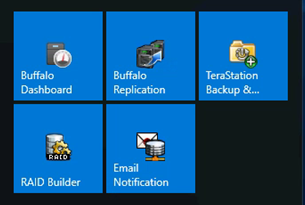 First set up the replication target folder on the Windows Storage Server / IoT NAS. 1. Access the WSS unit using Remote Desktop. 2. Click on the Windows Start button 3. Open the “Buffalo Replication” software.
