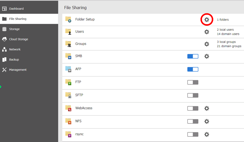 Shared Folder Snapshot 1. From the File Sharing tab, Click the settings icon to the right of “Folder Setup”.
