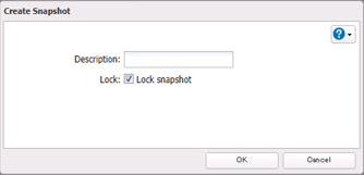 4. Select or clear the “Lock snapshot” checkbox to determine whether the created snapshot will be locked or unlocked. A locked snapshot will not be deleted by auto-archiving. Enter a short description if desired, then click OK.