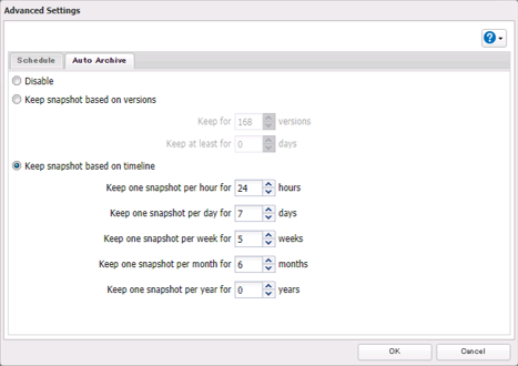 Schedule Snapshots The TeraStation allows you to not only create a snapshot manually, but also schedule automatic snapshots and auto-archive them to save TeraStation capacity.