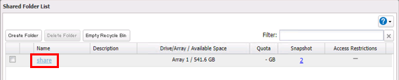 2. Click the number under “Snapshot” for the shared folder on the shared folder list.