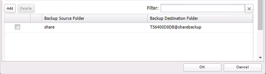 9. Select the shared folder that will be the backup source and destination. Then click OK.