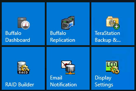 First, set up the replication target folder on the Target WSS NAS. 1. Access the target WSS unit using Remote Desktop. 2. Click on the Windows Start button 3. Open the “Buffalo Replication” software.