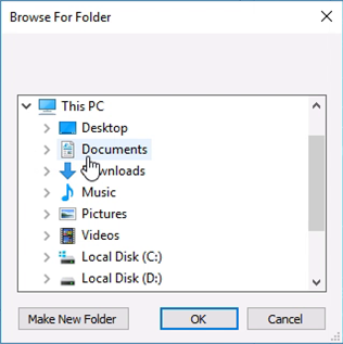 6. The “Folder” entry will open a normal Windows folder selection dialog box. Choose the folder to use for replication or create a new one.