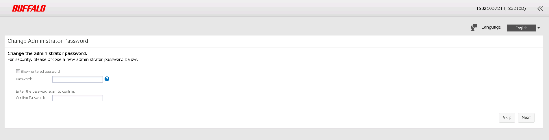 4. The first step is to set the administrator password. The new admin password cannot be “password”. You can skip this step and change the password later. Note: Administrator password change is mandatory on TS5020/3030 series firmware v3.00 or later.