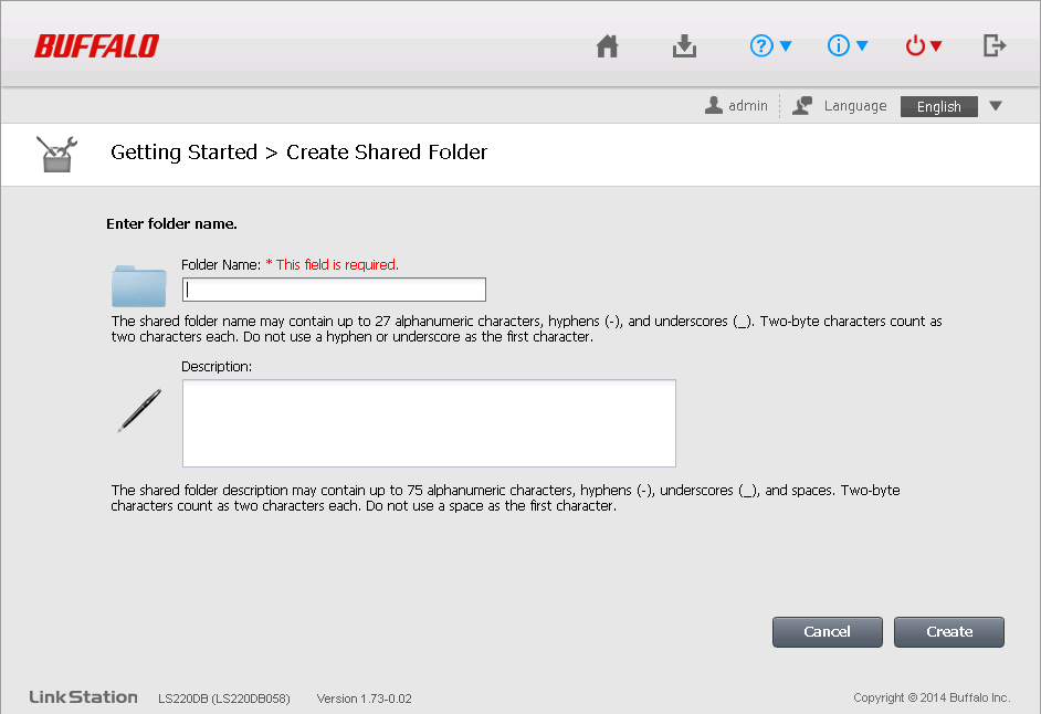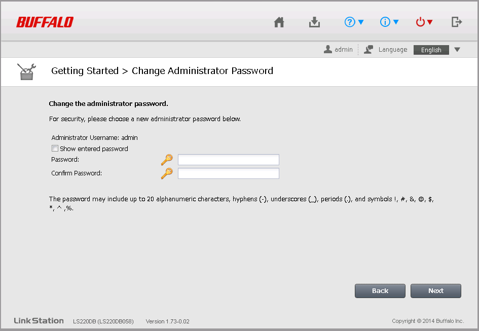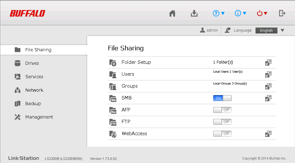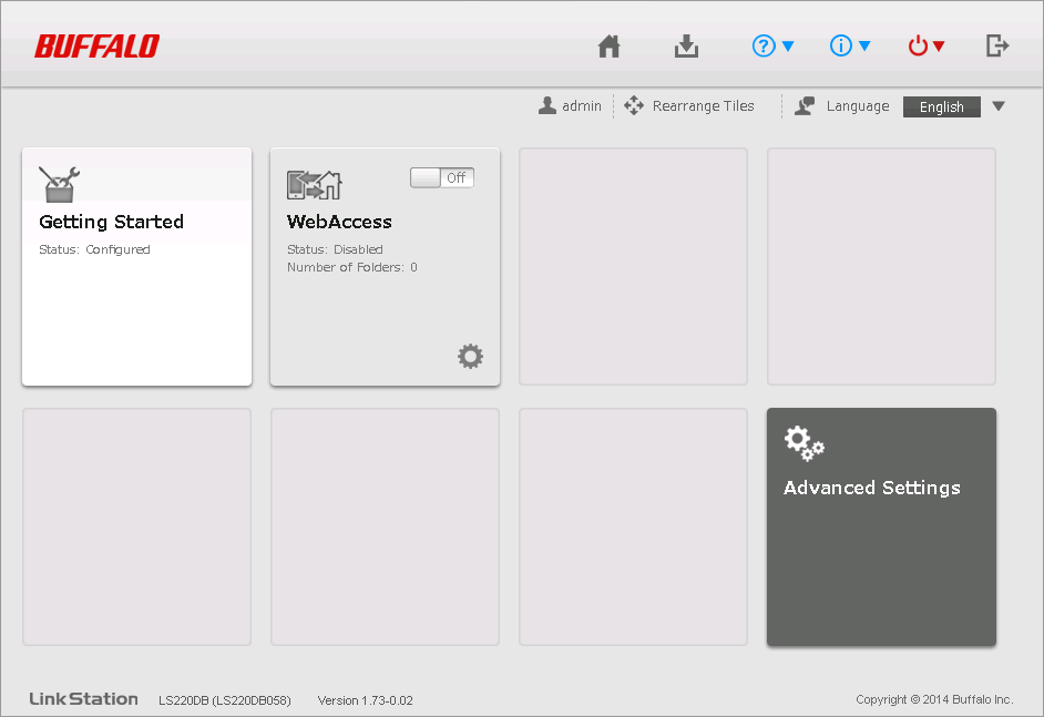 8. The advanced WEBUI will show up. For more information consult the user’s guides available at http://d.buffalo.jp/LS220DB/