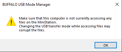 5 Make sure that your computer is not accessing any files on the MiniStation. Accessing files while changing the USB transfer mode may corrupt them.