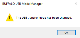7 A message appears after changing the transfer mode finishes. Click OK and close the application.