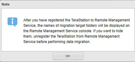 2. Read the displayed message about Remote Management Service displaying the migration target folders carefully and click OK.