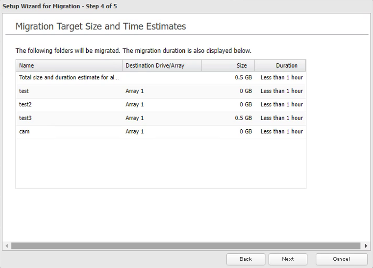 6. This step will show the calculated data size and the estimated time required to migrate. Click Next.