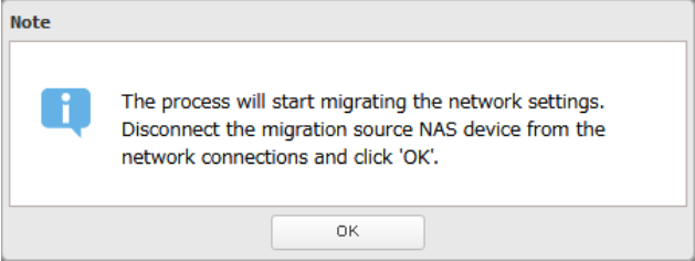 8. After completed the configuration, click OK. Before the configuring process finishes, do not operate the migration destination NAS. After finish, click OK.
