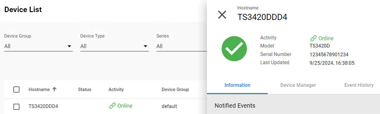2. From the Device List, select the TeraStation that’s ready to be remote setup. The management window will show up at right.