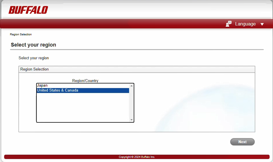 5. If Buffalo Remote Settings Connection App (Windows-only) has not been installed onto your computer, you will be prompt to download the Installer. 5a. After clicking the “Download Installer” above, it will redirect you to the Buffalo download website. Select the region then click "Next".