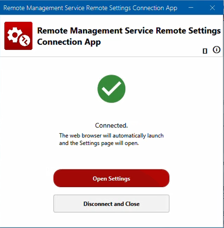 10. Click “Disconnect and Close” when you no longer need to access the Remote settings. Otherwise the Remote Settings connection will automatically terminate after six hours since the connection was established.