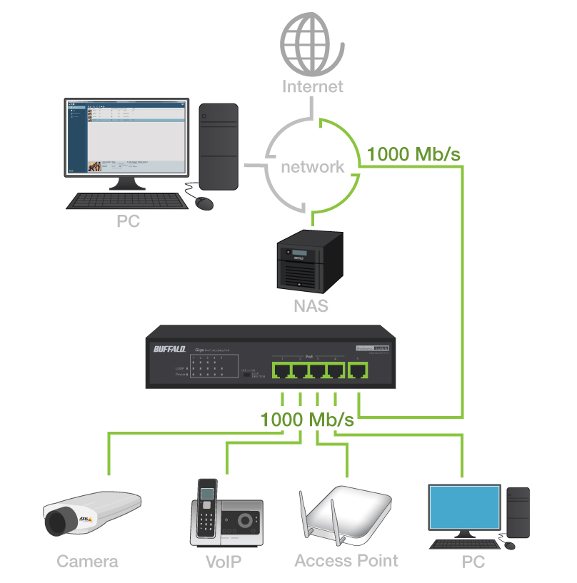 BUILT TO LAST Buffalo's Gigabit Green Ethernet High Power PoE Switches come with a compact and durable all metal chassis and are fan-less which provides silent and reliable operation. Buffalo's lifetime warranty* ensures that you will never have to replace your switch due to defects.