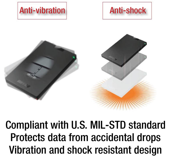 The BUFFALO SSD-PG offers cover-to-cover rugged design that provides overall drop protection, and its compact form factor lets you carry your files in your pocket. SSDs also contain no moving parts, so it is more shock-resistant and less prone to failure. No matter if it’s work or entertainment, you can easily take it to go. The BUFFALO SSD-PG comes with a three-year warranty for registered devices (two years for unregistered devices).