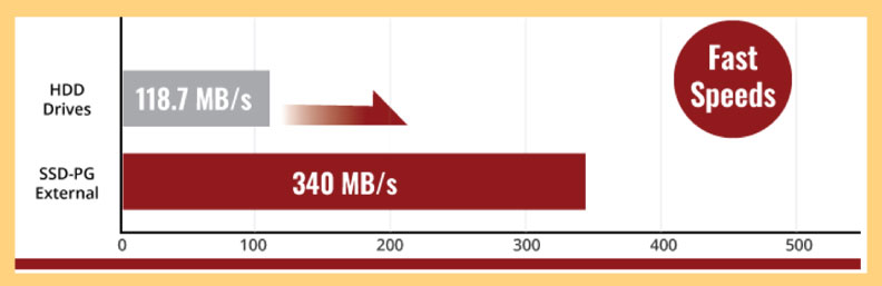 FAST SPEEDS AND MULTI-TASKING - Lightning fast read/write speeds that lets you work with files directly from the drive, enabling photo/video editing without slowing down your computer.