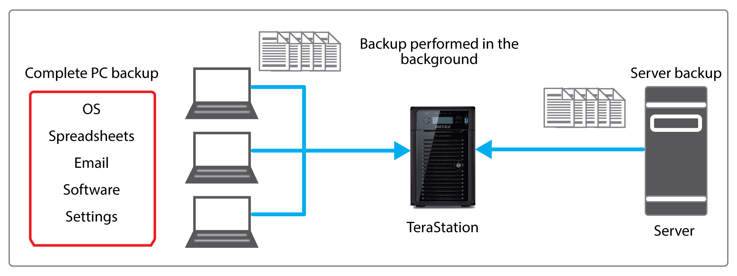 TeraStation WSH5610DN is bundled with eleven licenses of NovaBACKUP Buffalo Edition (one server and ten workstations), providing a complete, all-in-one data protection solution for PCs and Windows® servers.