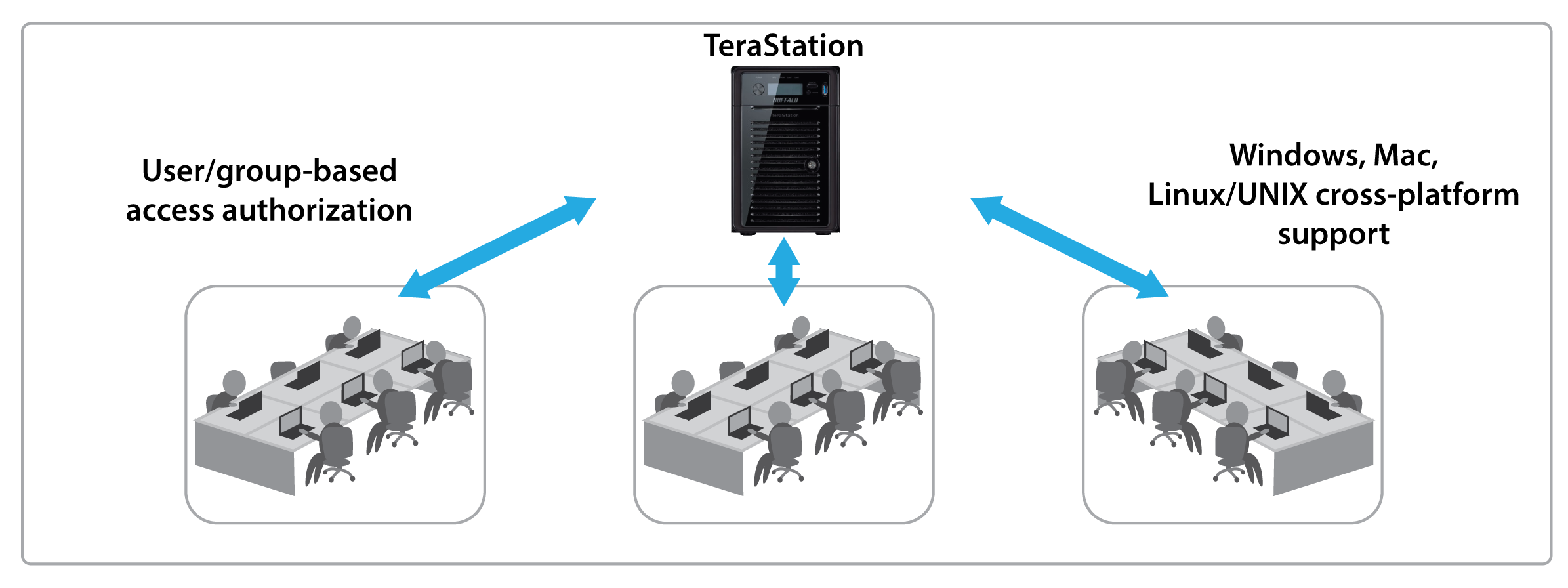 TeraStation WSH5610DN offers high capacity, highly available storage accessible among multiple platforms for seamless centralized storage and backup. Create user and group profiles and control folder and file access to protect business critical content and privacy.