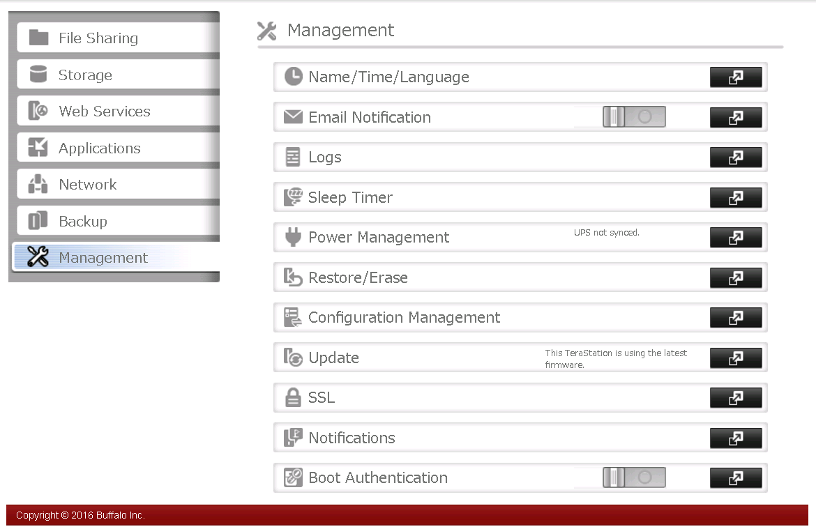 4. Access the TeraStation's web user interface, by entering the current IP address of the unit into a web browser. If the current IP is unknown the unit can be located using NAS Navigator. If NAS Navigator is not installed you can download the latest version by going to the downloads page for the TeraStation on the Buffalo website.