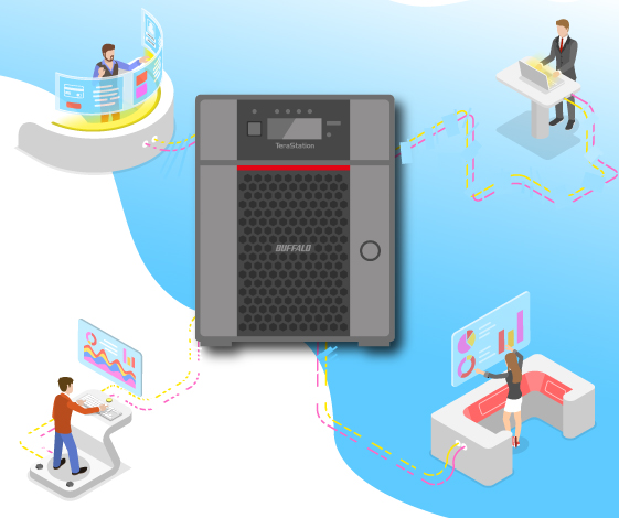 Why bother with carrying around all those devices when you can easily access your files on your NAS anytime, from anywhere? With a NAS, you can also remotely share any number of files or folders on the NAS. Buffalo NAS allows you to create a link to a specific file or folder on your NAS and send the link to anyone, and they will be able to securely access shared files without hassle. To share data locally, users will only need to connect to the network instead of connecting hard drives from one computer to another. You can also create and manage users with granulated access permissions so they will only access allowed folders.