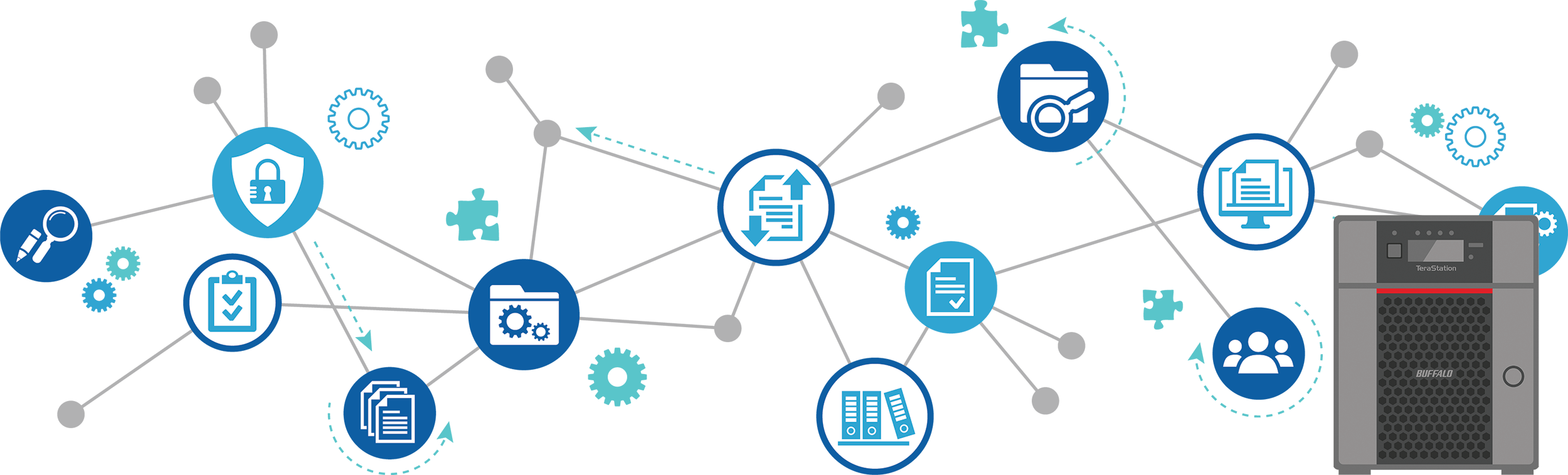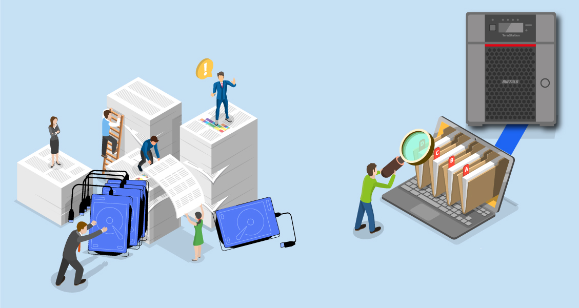 Snapshots are extremely helpful in situations where you would need an instantaneous short-term backup, and especially shine when it comes to short term data backup and file versioning. Taking a snapshot consumes only a small amount of additional storage space and effects very little impact on system performance thanks to Btrfs's copy-on-write architecture. Buffalo’s new TeraStation 5020 series allows you to automatically schedule or manually create snapshot copies with timeframes as granulated as every five minutes, so you can always have snapshots on hand to help recover single files or entire storage volumes. Now work with peace of mind with snapshots to mitigate human error to even ransomware.
