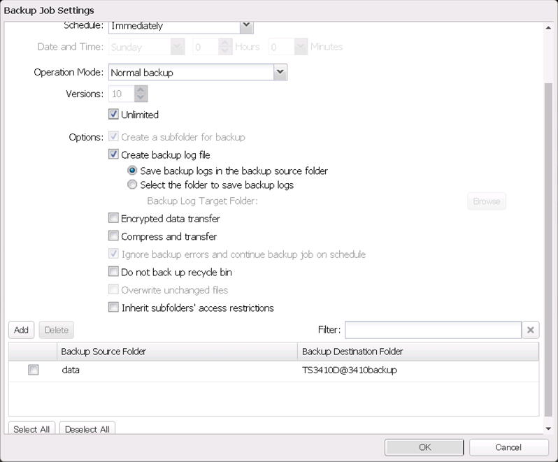 The first step in setting up TeraStation to TeraStation is to set up a folder on the target TeraStation.