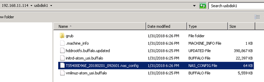 5. Access the “usbdisk x” shared folder while connecting the USB drive to the TeraStation which settings were saved in the previous step. The “x” in the folder name represents the USB port number you connected the drive to.