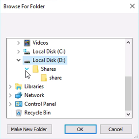 6. The “Folder” entry will open a normal Windows folder selection dialog box. Choose the folder to use for replication or create a new one.