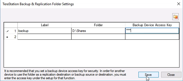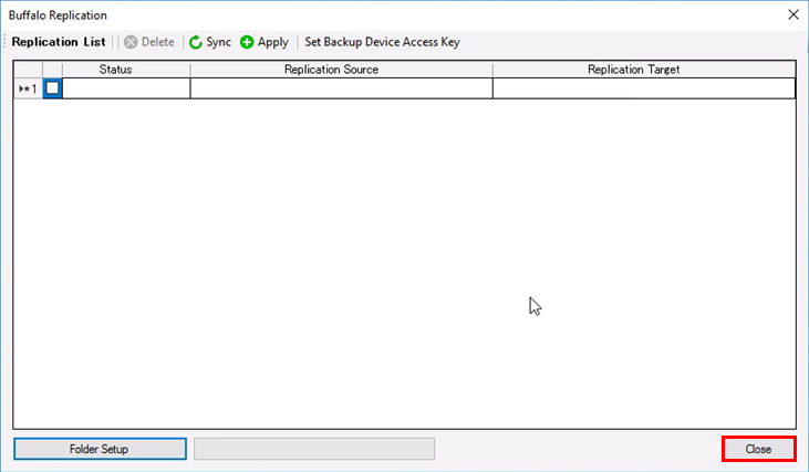 8. The replication target is now ready. Click the “Close” button to exit the Buffalo Replication software.