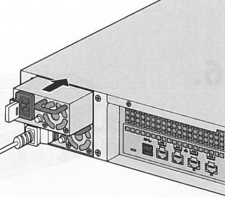 3. Disconnect the power cable from the back of the failed power supply. Note: Make sure you are disconnecting the correct power cable. If the power cable of the good power supply was disconnected your TeraStation will be powered-off ungracefully.