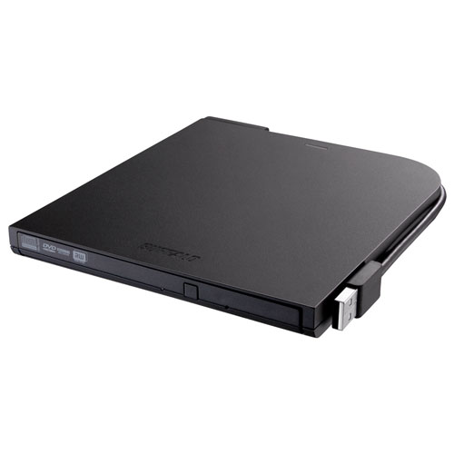 The Buffalo 8X Portable DVD Writer includes two integrated USB cables that snap to the chassis for easy mobility. An LED power indicator lets you know if one or two USB cables are required to power the DVD drive. Powered by your laptop USB ports, no AC adapter is necessary. Most laptops require one USB port to operate properly, however, a red LED will glow if you need to connect the second USB cable to power the unit.